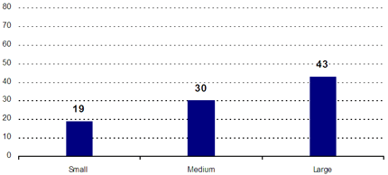 La taille de l’échantillon étant de 1 033 entreprises, les résultats peuvent être considérés exacts du point de vue des statistiques à +/- 3,1 points de pourcentage, 19 fois sur 20. La marge d’erreur augmente quand les résultats sont examinés au regard d’un sous-échantillon en particulier.