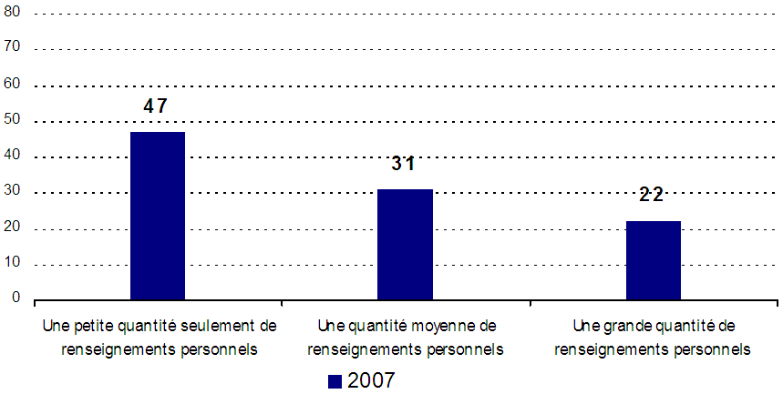 - Tandis qu’en majorité, les entreprises recueillent des renseignements personnels auprès de leurs clients, nous observons de grandes variations au chapitre de la quantité. La pluralité des entreprises — soit un peu plus de quatre sur dix — mentionnent qu’elles recueillent seulement de faibles quantités de données. Environ le tiers disent recueillir des quantités modérées, et les autres, soit une sur cinq, en recueillent de grandes quantités.