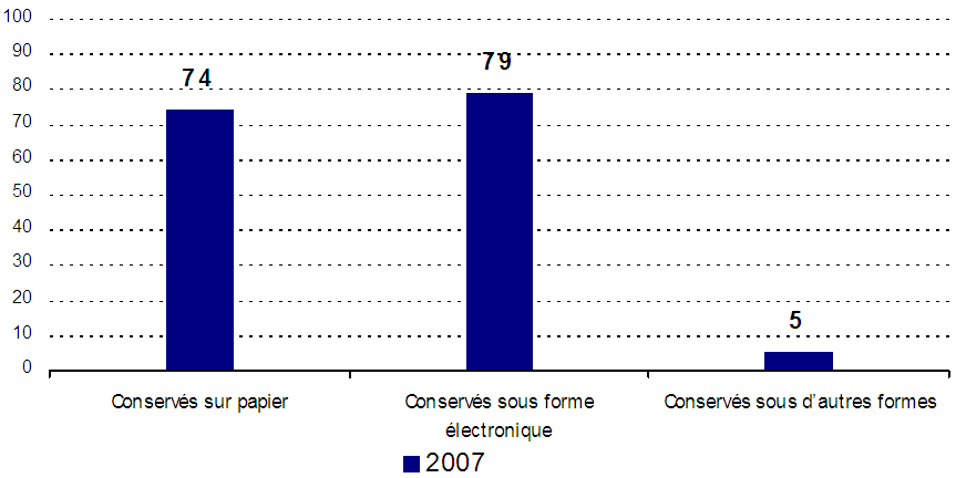 - Même si la technologie de l’information a eu une incidence phénoménale sur les activités quotidiennes des entreprises en tous genres, il convient de souligner qu’il y a presque autant de renseignements conservés sur papier que de renseignements mémorisés en version électronique. Environ huit entreprises sur dix qui recueillent des renseignements personnels au sujet de leurs clients les conservent dans l’un ou l’autre format, tandis qu’une faible proportion opte également pour d’autres formats.