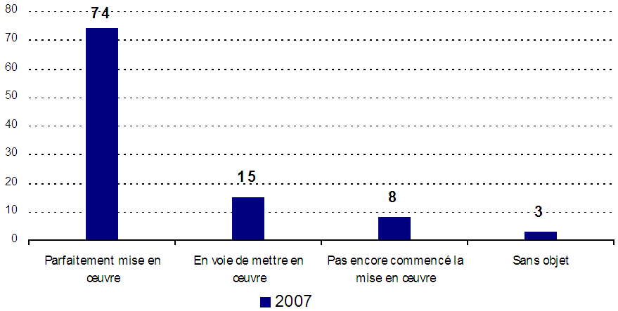 - En règle générale, les résultats indiquent que même si les entreprises qui recueillent des renseignements personnels auprès de leurs clients ont majoritairement mis en application ces dispositions dans leur ensemble, dans un faible nombre d’entreprises, qui a néanmoins de l’importance, ces mesures ne sont qu’en voie de mise en œuvre, et d’autres entreprises n’ont pas du tout pris de mesures à cet égard (ni ne sont en train de le faire).