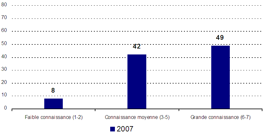 - En général, c’est en grand nombre que les répondants évaluent favorablement la mesure dans laquelle leur entreprise est au courant des obligations qui lui revient en vertu des lois canadiennes sur la protection des renseignements personnels. En effet, près de la moitié des entreprises font état d’une connaissance soutenue de leurs obligations à ce chapitre. Les résultats signalent néanmoins qu’il faut absolument faire connaître les obligations des entreprises en vertu des lois canadiennes sur la protection des renseignements personnels, étant donné qu’en proportions semblables, les répondants font état d’une connaissance faible ou modérée des obligations des entreprises dans ce domaine.