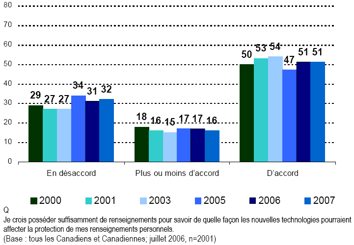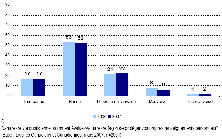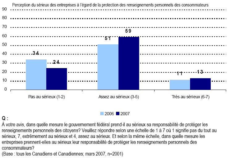 Compte tenu du nombre de plus en plus élevé de Canadiennes et de Canadiens qui adoptent la nouvelle technologie et de la possibilité que celle-ci modifie nos interactions quotidiennes avec les gens, les gouvernements et les entreprises, il demeure important de veiller à ce que les renseignements personnels soient protégés contre tout usage interdit. Étant donné les brèches à la protection des données, comme les vols de numéros de cartes de crédit de clients de Winners/Home Sense survenus au cours de l’année antérieure, il n’est pas tout à fait étonnant que les Canadiennes et les Canadiens se préoccupent de la protection de leurs renseignements personnels. Les préoccupations traditionnelles ayant trait à la fraude par carte de crédit et au vol d’identité, auxquelles s’ajoutent de nouvelles sources d’inquiétude comme le vol de numéros d’assurance sociale, ont toutes été intensifiées du fait de l’utilisation des nouvelles technologies dans nos interactions quotidiennes.