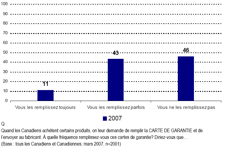- Bon nombre de Canadiennes et de Canadiens ne remplissent pas les bons de garantie; cependant, ils ne sont pas particulièrement au courant qu’il n’est pas toujours nécessaire de le faire pour que la garantie soit légale, ou encore, que les fabricants se servent souvent de ces bons dans leurs activités de marketing.