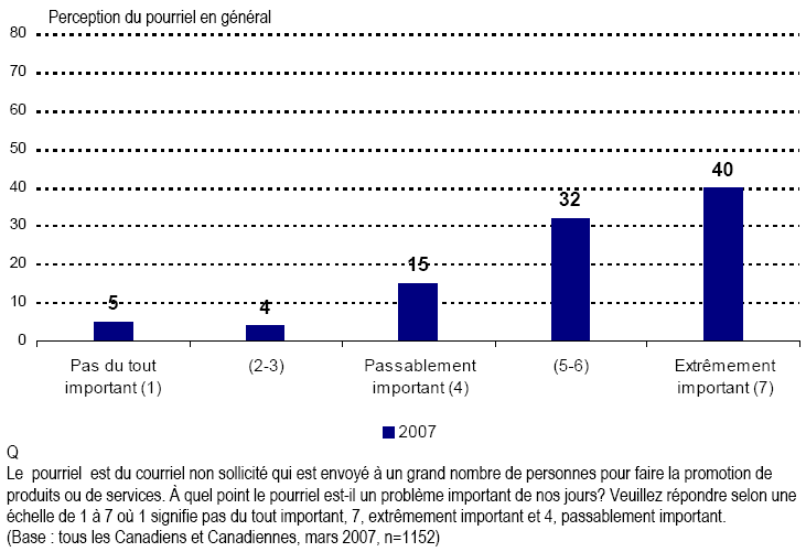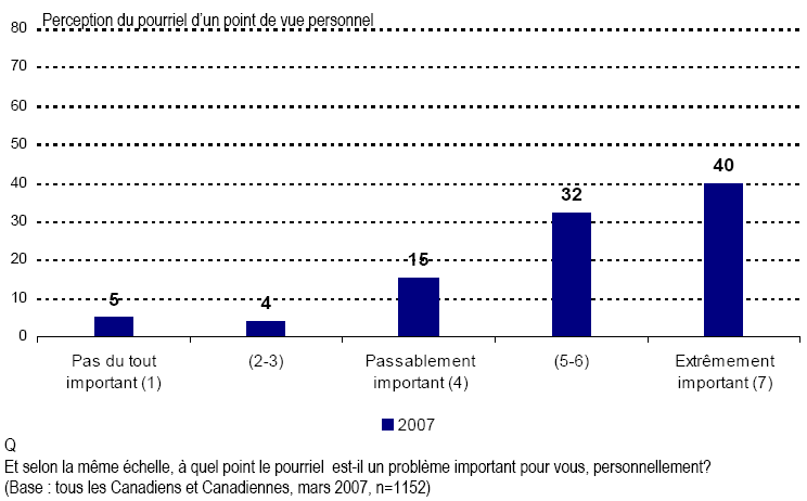 - Les pourriels sont devenus une réalité quotidienne de l’ère électronique. Des efforts considérables sont actuellement déployés pour lutter contre leur croissance continue. À cet égard, peu de Canadiennes et de Canadiens estiment que les pourriels constituent un problème négligeable, à la fois de façon générale et pour eux-mêmes personnellement.